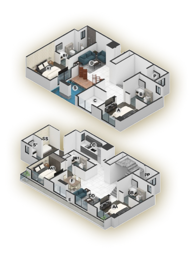 Experience the luxury of vertical living with our exquisite Duplex Apartments, where elegance meets functionality in a spacious and unique design.
